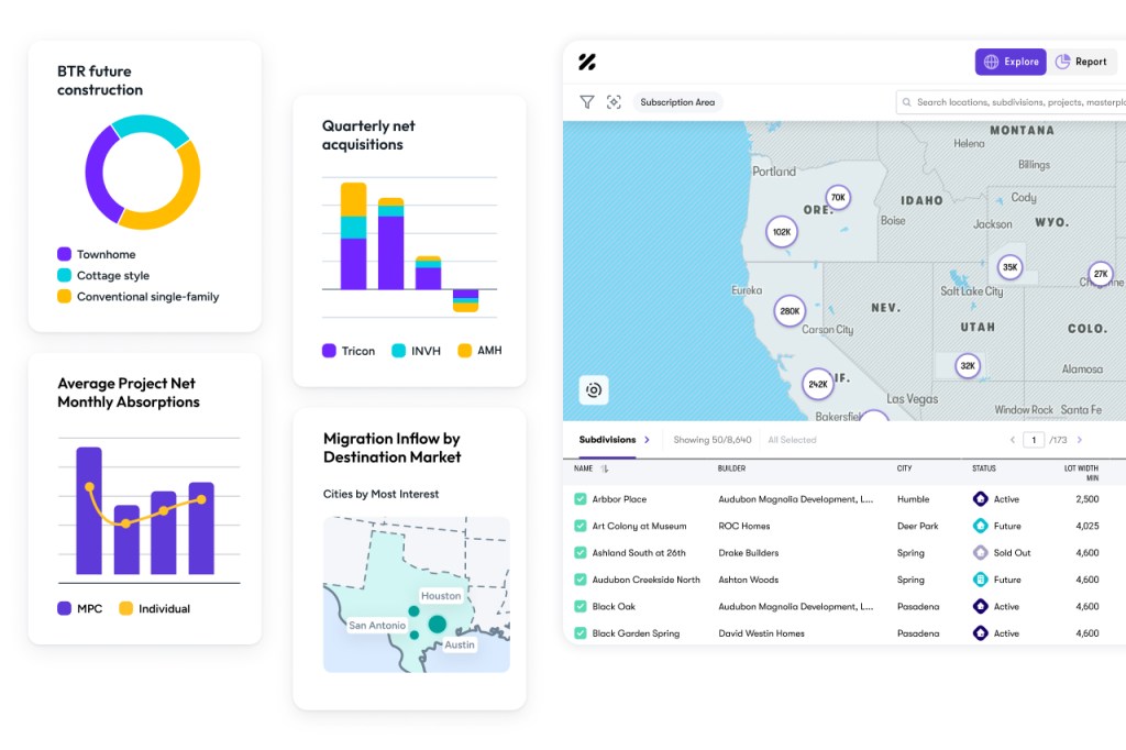 Get full visibility into the housing market. Track land, lots, listings, builders, and sales with powerful filters, maps, and exportable reports.