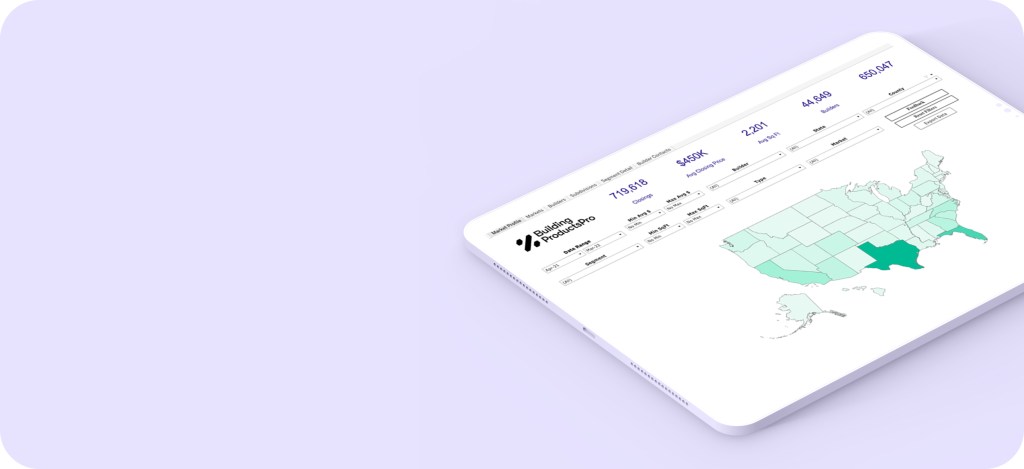 Unlike traditional research methods or anecdotal information, BuildingProductPro connects you directly to the data that matters. Track actual builder performance, subdivision-level activity, and consumer trends to back every decision with insight.
