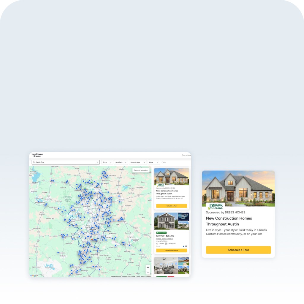 Promote your listings on NewHomeSource and Livabl to boost visibility, drive traffic, and grow your sales pipeline.