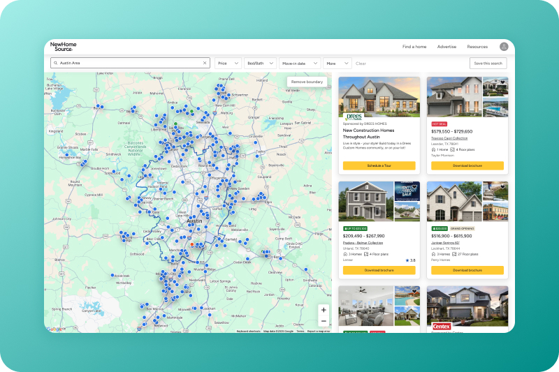 With NewHomeSource and Livabl, you reach shoppers who are actively looking for something new. No resale noise, just real opportunities.