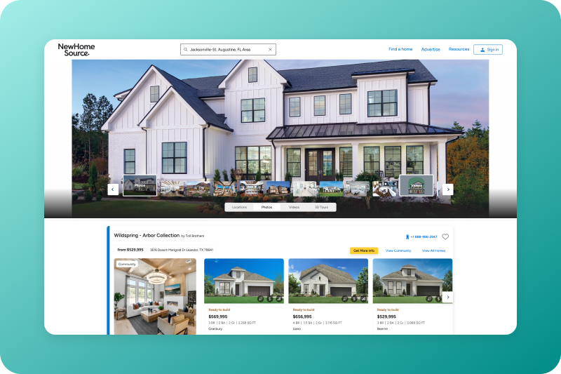 NewHomeSource.com, the #1 destination for new-home listings in the U.S., connects you directly with buyers searching exclusively for newly built home. We put your listings in front of the right audience every time.